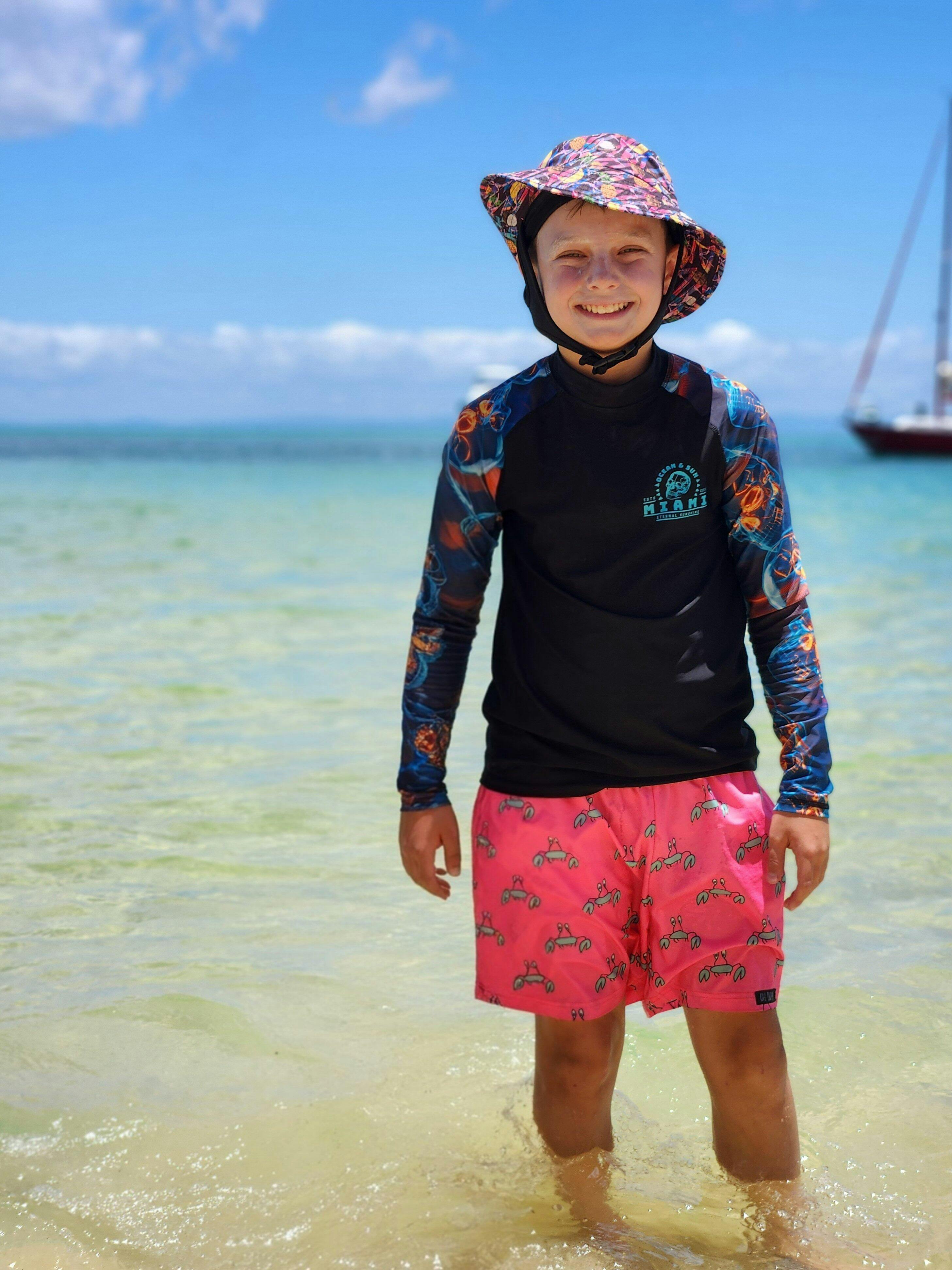 I purchased the surf hats for my son and gifted one to his cousin for Christmas. These were the perfect "must have" item for our beach resort holiday. No constant nagging from the parents to put their hats on. One clip and they were happy to keep them on all day from the pool to the beach and even whilst snorkelling! Comfortable to wear, stylish, quick drying and great sun protection. 👌